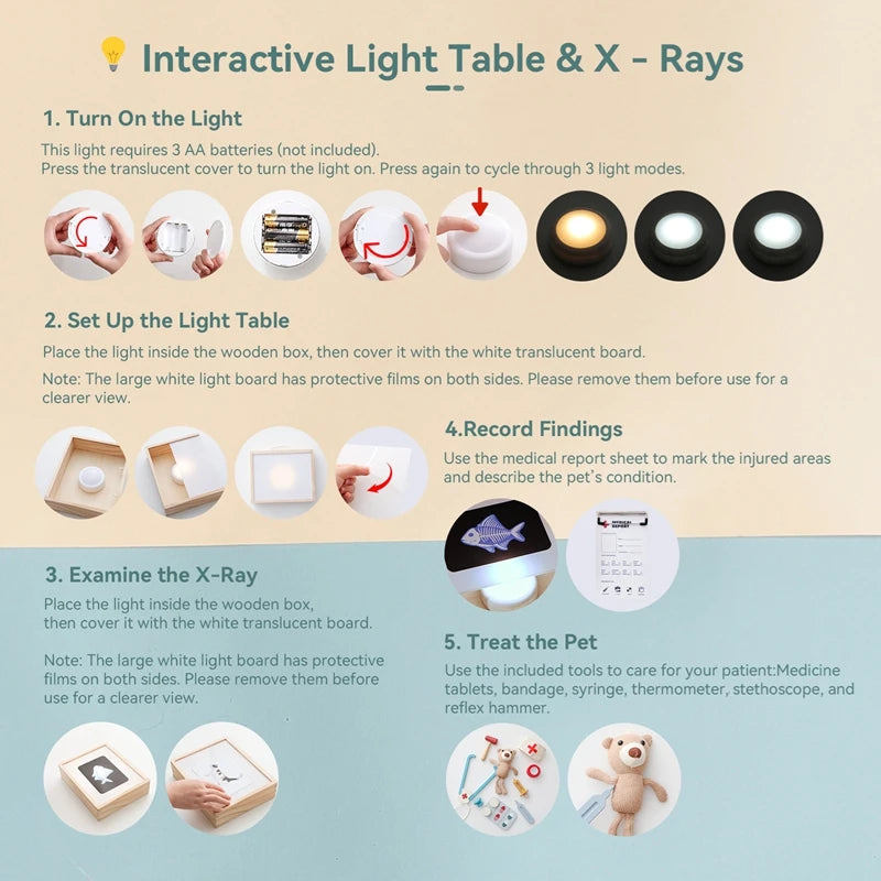 • Complete doctor set: includes realistic wooden medical instruments and a portable medicine box for easy storage.